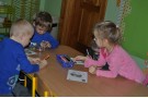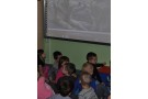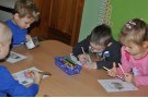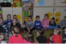Przedszkolaki wysłuchały opowieści o tytułowej bohaterce książki Ewy Nowak Szarce. Wiedzę dzieci wzbogaciły ilustracje i ciekawostki z życia wilków w ich naturalnym środowisku. Kolejną atrakcją spotkania była zabawa ruchowa (z wykorzystaniem „magicznego dywanu) „Tropiciele śladów” - dzieci rozpoznawały ślady zwierząt żyjących w lesie. Na zakończenie zajęć przedszkolaki malowały ilustracje przedstawiające Szarkę.