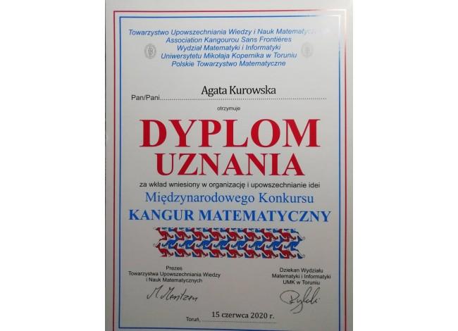 W związku z zawieszeniem zajęć w szkołach, w tym roku szkolnym, konkurs „Kangur Matematyczny” został przeprowadzony drogą internetową za pośrednictwem platformy dzwonek.pl.
